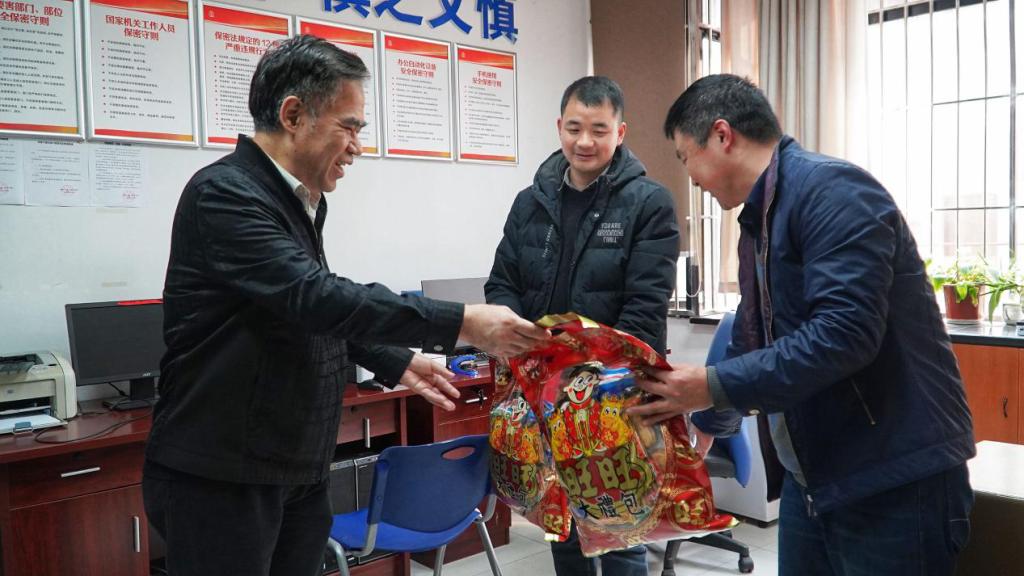 2月12日上午10时,农历大年初一,学校党委书记李志雄带领党政办公室、党委宣传部、党委保卫部、后勤处等相关部门负责人及值班干部,到保卫处、食堂、学生公寓、行政办公楼看望慰问了各部门在寒假期间坚守工作岗位的值班人员。