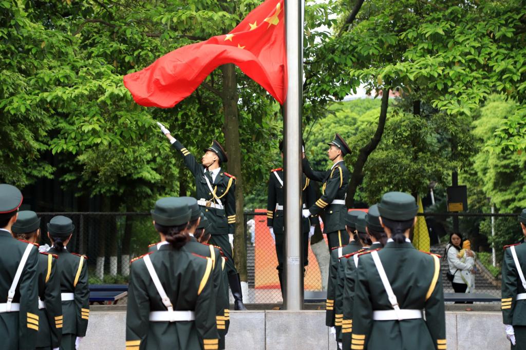升旗仪式,操场上一片宁静,所有师生的脸上都流露出庄严的神情。雄壮的国歌奏响,鲜艳的五星红旗冉冉升起,师生们同升国旗、共唱国歌,喜迎pp电子第十八届运动会的到来。