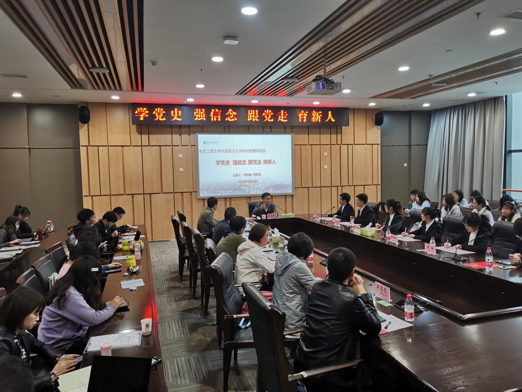 4月15日下午,马克思主义学院在新图书馆第五会议室召开“学党史、强信念、跟党走、育新人”党史学习教育师生座谈会,校党委书记李志雄应邀出席并作专题辅导报告。马克思主义学院党委书记宋明江、院长杨维东、党委副书记刘富胜、副院长简福平以及师生代表近60人参加会议。会议由宋明江主持。