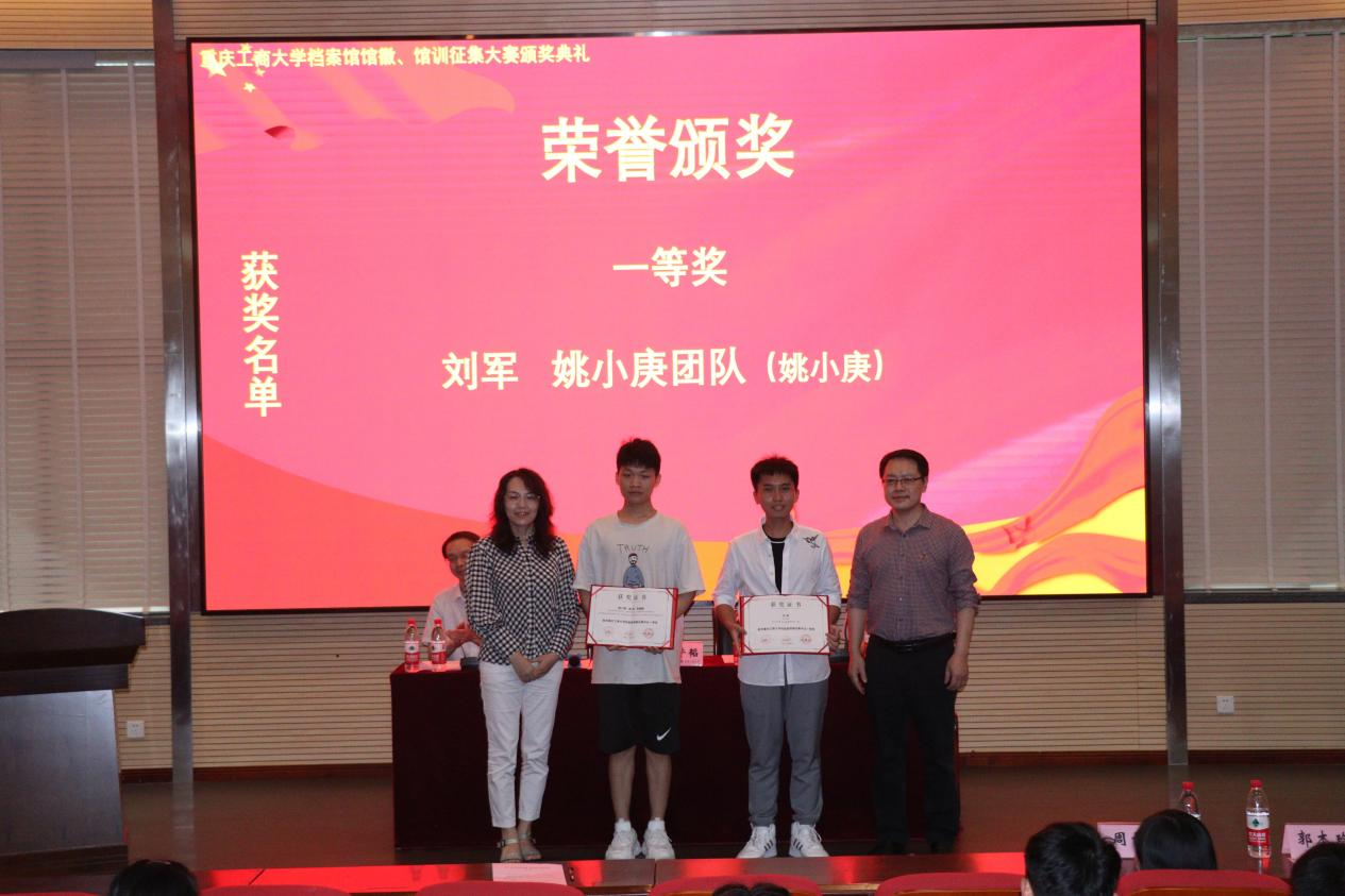 5月20日中午,由pp电子档案馆、艺术学院、创新创业学院共同举办的pp电子平台官网入口档案馆馆徽、馆训征集大赛颁奖典礼在兰花湖片区报告厅成功举行。档案馆馆长蒋年韬、艺术学院党委书记李莉莎、档案馆副馆长郭楠、艺术学院专职组织委员冉涛、教务处副处长胡卫军、艺术学院学工办主任郭本玲、档案馆办公室主任周雪玉以及获奖学生和创享设计师团队的同学参加了此次颁奖典礼。