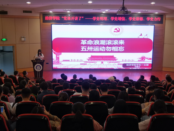 近期,经济学院党委党史学习教育系列活动“党课开讲啦”之师生共讲百年奋斗史在博智楼7200报告厅举办,经济学院党员和入党积极分子共270多人参加了此次活动。活动由专职组织员雷菁主持。