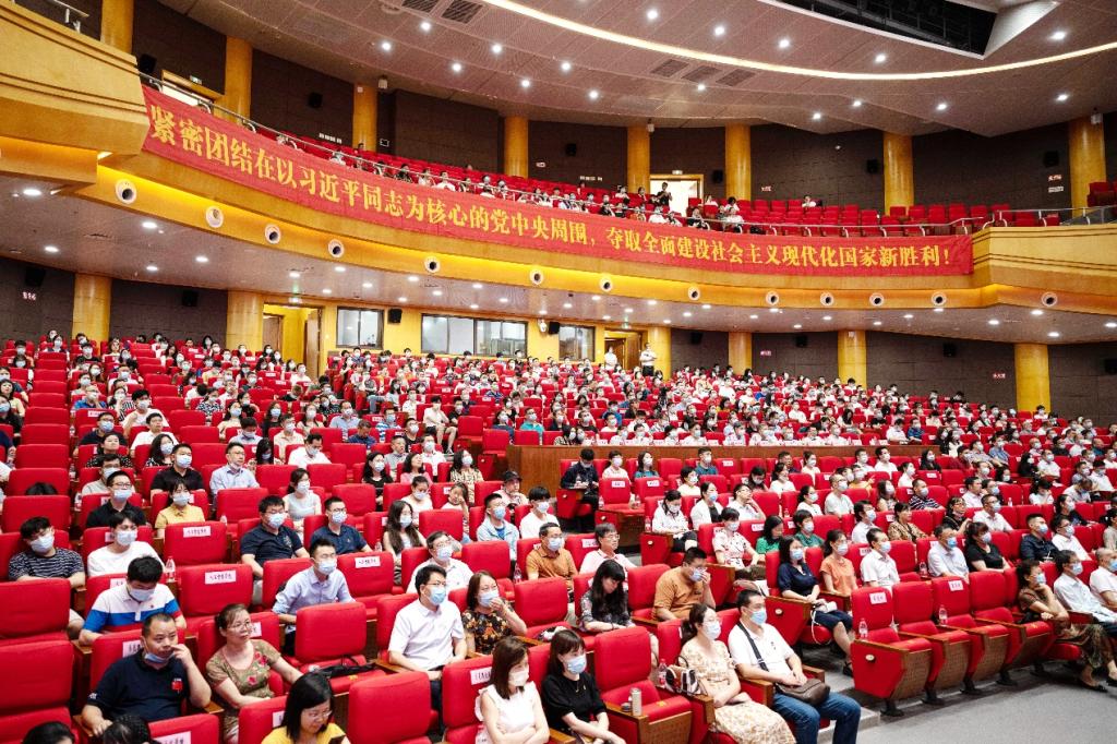 pp电子在三个校(片)区设立集中观看点,组织全校师生观看庆祝大会实况直播。全体在家校领导,校党委常委,全体中层干部、专职组织员,党员代表,民主党派教师代表,教师代表,学生代表,离退休老同志代表在南岸校区剧场、江北校区宏智楼B509学术报告厅和兰花湖片区学术报告厅集中观看。