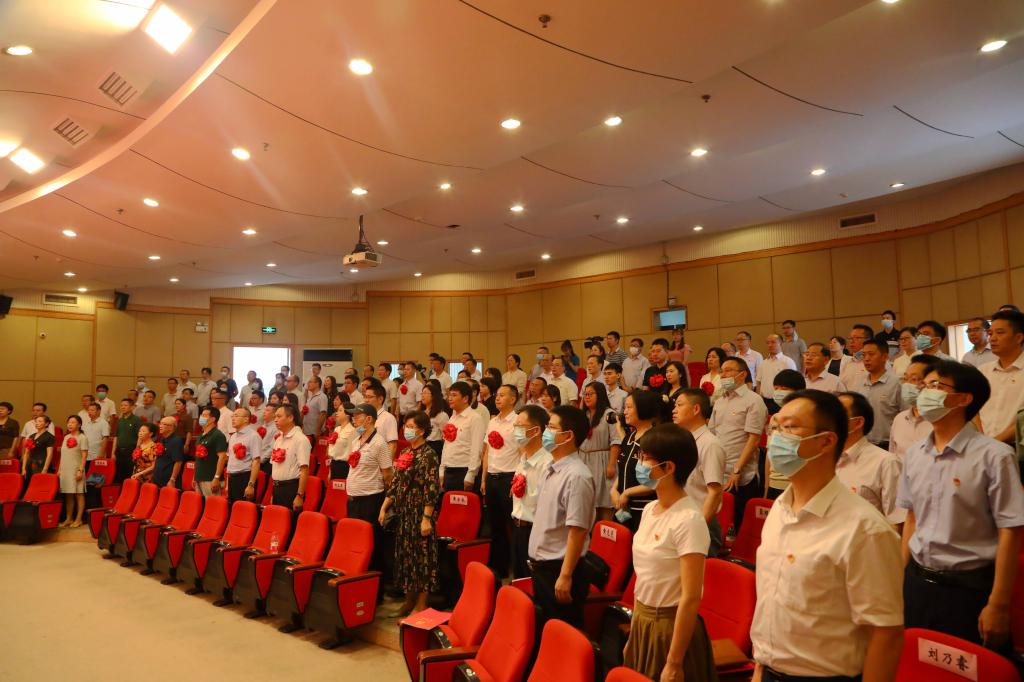 为庆祝中国共产党成立100周年,深入学习贯彻习近平总书记在庆祝中国共产党成立100周年大会上的重要讲话精神,回顾党的光辉历程,弘扬党的优良传统,推进学校党的建设和事业发展, 7月5日上午,pp电子在博智楼7200报告厅召开庆祝中国共产党成立100周年暨“两优一先”表彰座谈会。全体校领导、党委委员、全校中层正职干部、党委职能部门中层副职干部、受表彰的先进集体和优秀个人代表、30年以上党龄党员代表、师生党员代表参加座谈会。党委副书记、校长孙芳城主持座谈会。
