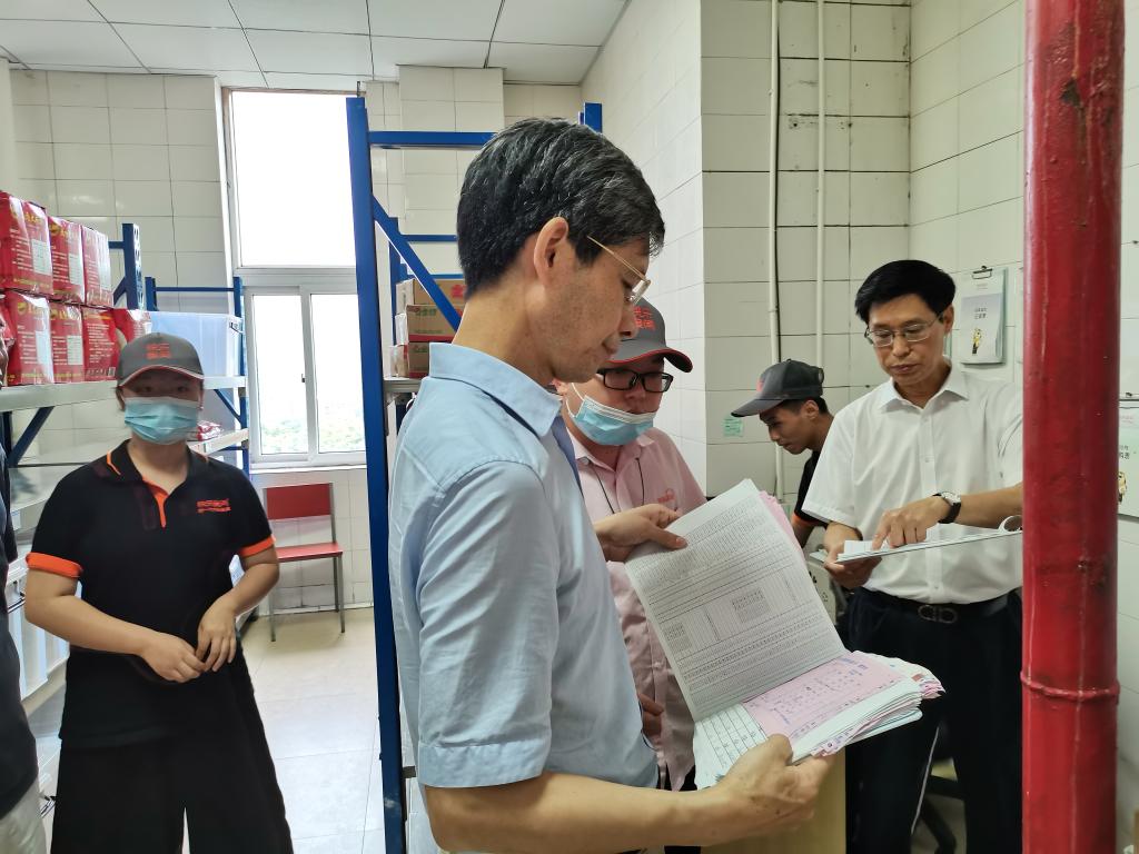 7月5日下午,校长孙芳城、副校长陈兴述深入学校各食堂,对食品安全、食堂管理等工作进行检查,资产管理处、后勤处等部门负责人陪同检查。