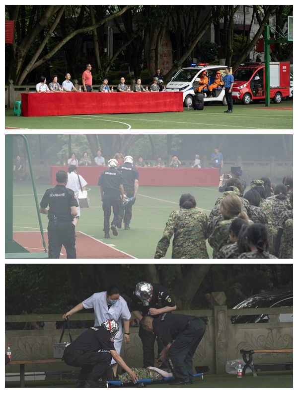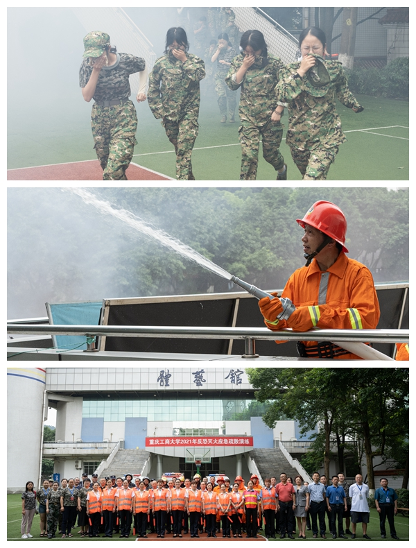 为了进一步普及安全知识,增强安全意识,提高自防自救能力,检验相关部门处置突发事件的能力,提升学校安全管理水平,7月9日上午,党委保卫部(保卫处)、党委学工部(学生处)在学校体艺馆联合举行了pp电子平台官网入口2021年反恐灭火应急疏散演练,部分正在军训的学生、军训教官和老师、安保队员、平安校园志愿者、保卫干部、物业管理人员和校医院医务人员共计3300余人参加了演练。