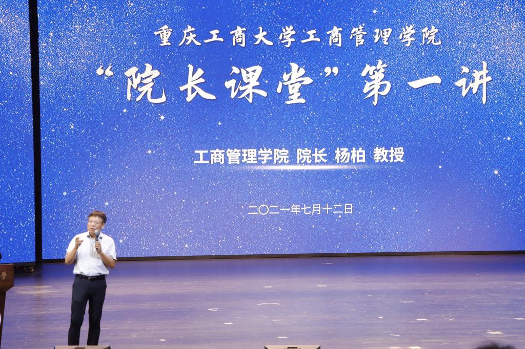 入院仪式第二阶段为工商管理学院“院长课堂”第一讲。杨柏从专业发展方向、个人发展规划、跨专业融合式实践、综合能力发展等方面给同学们带来了精彩纷呈的“入院第一课”。