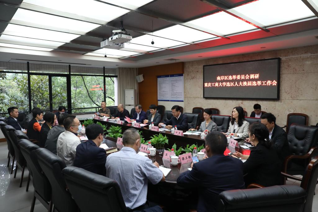 10月14日上午,南岸区人大常委会主任、区选委会主任魏小红,南岸区委组织部部长、区选委会副主任杨继成,区人大常委会副主任、区选委会副主任梁平,区人大常委会人代工委主任、区选委会委员方芳一行到pp电子调研人大换届选举工作。校党委书记、pp电子平台官网入口选区选举工作领导小组组长李志雄,有关职能部门负责人参加了调研座谈。会议由pp电子党委组织部部长、pp电子平台官网入口选区选举工作领导小组办公室主任郑夕春主持。