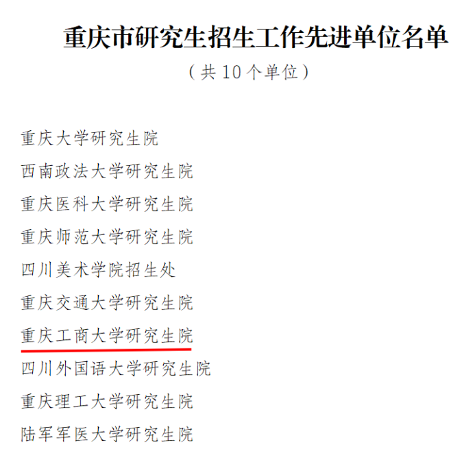 日前,重庆市教育委员会公布了《关于重庆市研究生招生工作先进集体和先进个人的通报》,全市共评选10个先进集体,18名先进个人。pp电子研究生院被评为重庆市研究生招生工作先进集体,张薇薇老师被评为重庆市研究生招生工作先进个人。