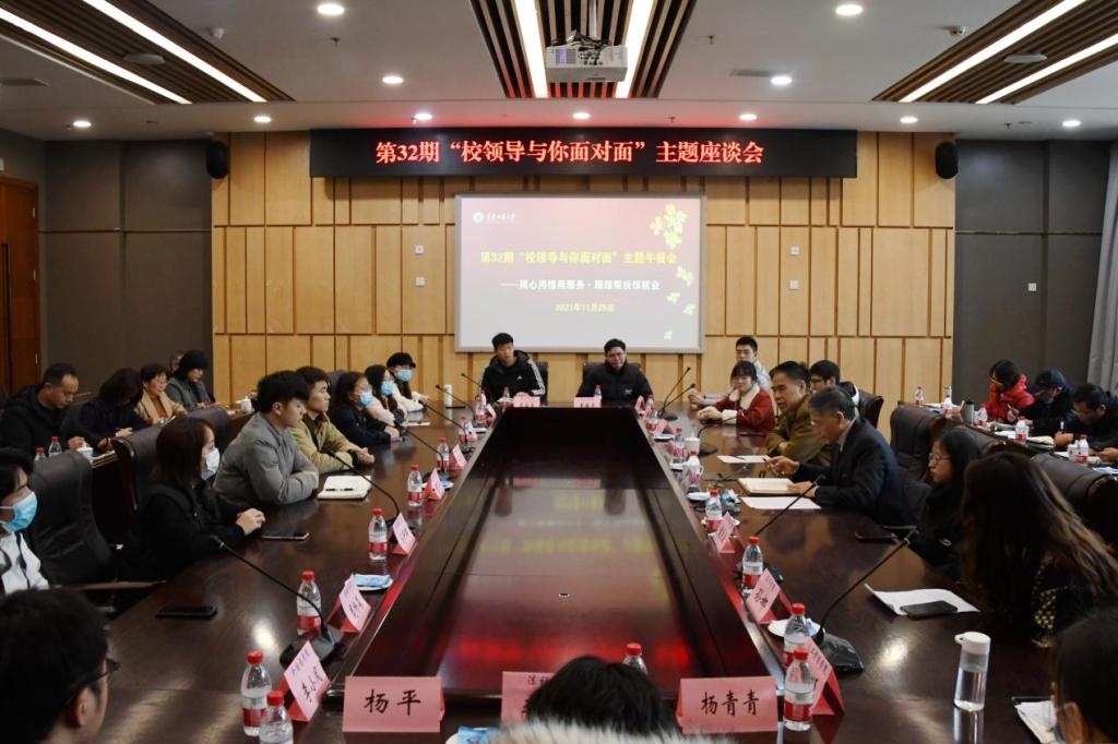 为进一步推动pp电子2022届毕业生就业工作,更有针对性地为同学们提供精准指导和服务,11月25日上午,学校在新图书馆二楼五会议室召开了以“用心用情用服务,跟踪帮扶保就业”为主题的“校领导与你面对面”主题午餐会。校党委书记李志雄、副校长陈运超、各学院党委(党总支)书记,以及2022届毕业生代表参加了会议。会议由陈运超主持。
