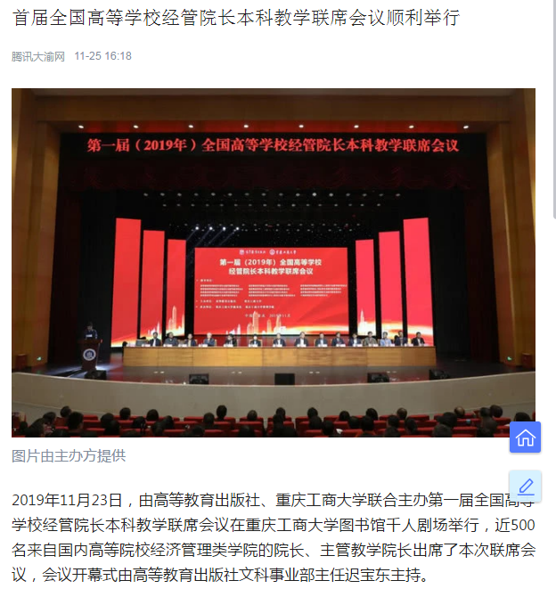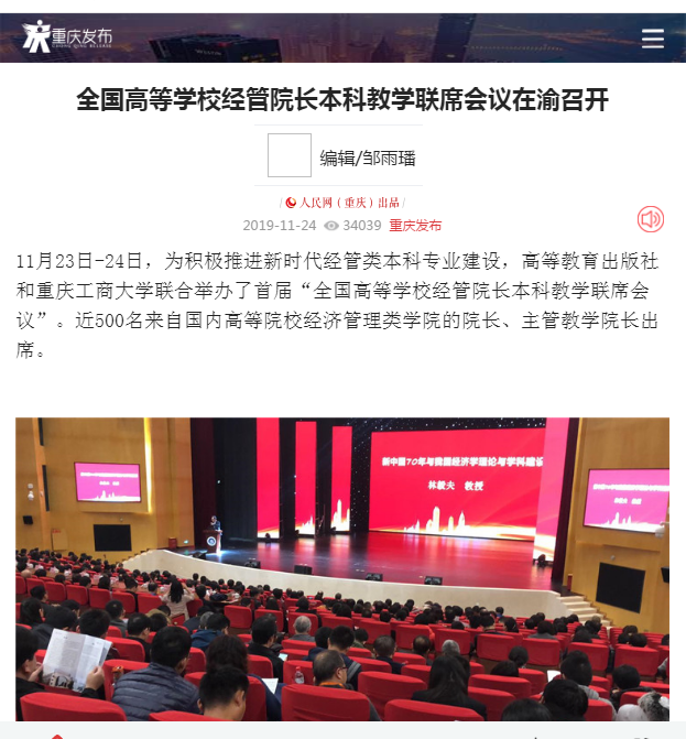 11月23-24日,第一届(2019年)全国高等学校经管院长本科教学联席会议在pp电子召开,会议由高等教育出版社与pp电子主办,由pp电子教务处、管理学院共同承办。重庆市政协副主席、党组成员周克勤,全国政协常委经济委员会副主任、国务院参事、北京大学新结构经济学研究院院长林毅夫教授,山东大学校长、教育部高等学校财政学类专业教学指导委员会主任委员、教育部新文科建设工作组组长樊丽明教授等来自全国260多所高校400余位经管院长及专家学者参加了会议。