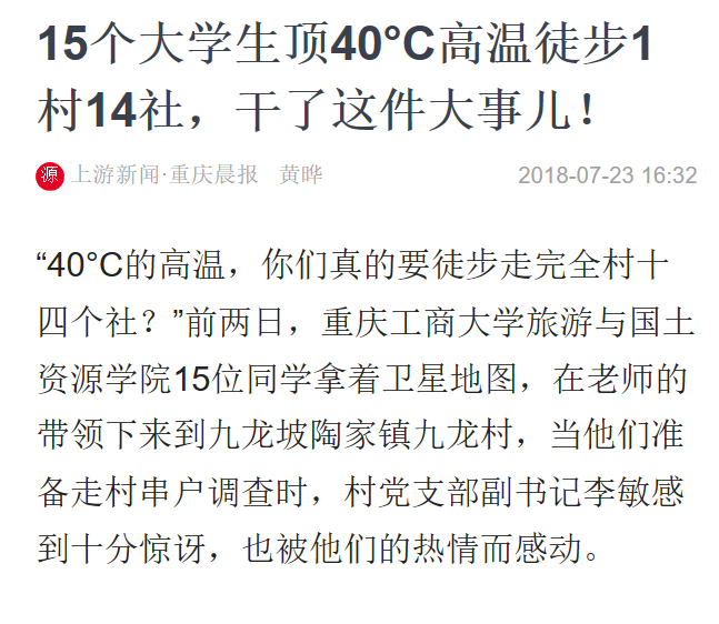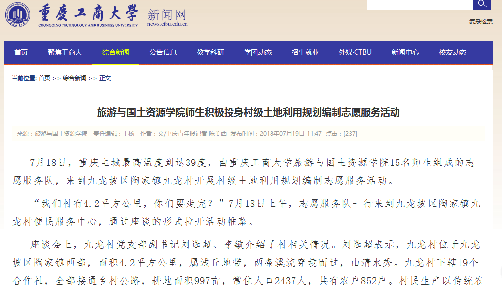 旅游与国土资源学院2018年暑期“三下乡”活动获校外媒体广泛关注和报道
