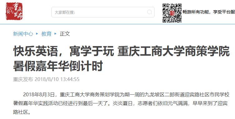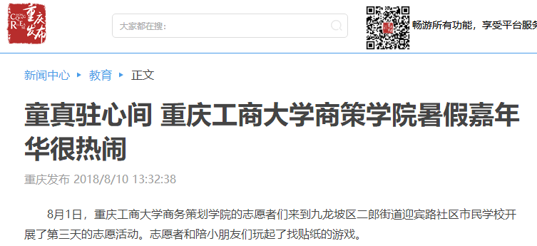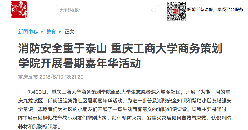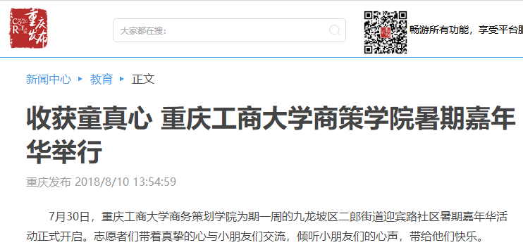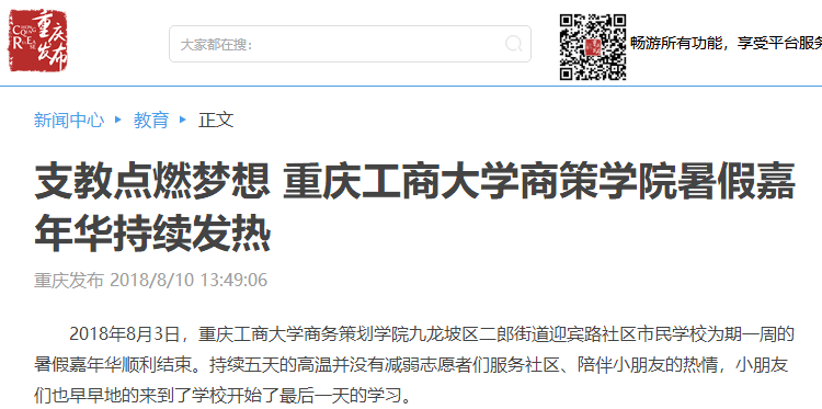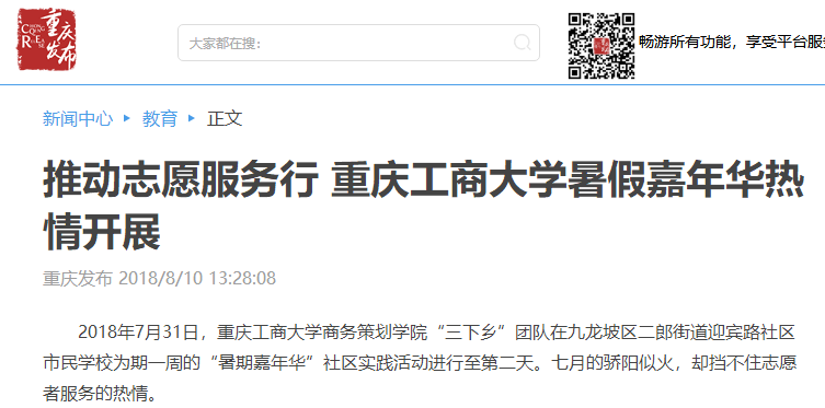 据悉,重庆电视台、中国青年网、人民网、华龙网以及大渝网等媒体均对我院志愿团队进行了大篇幅的关注报道。重庆电视台更是派出记者赴现场进行采访报道;报道发出后,社会反响热烈。