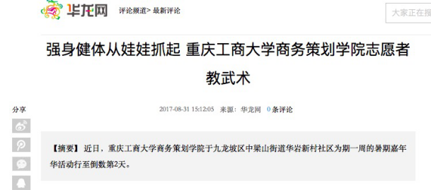 据悉,以华龙网为代表的网络媒体对我院实践团队进行了大篇幅的关注报道。报道发出后,社会反响广泛。