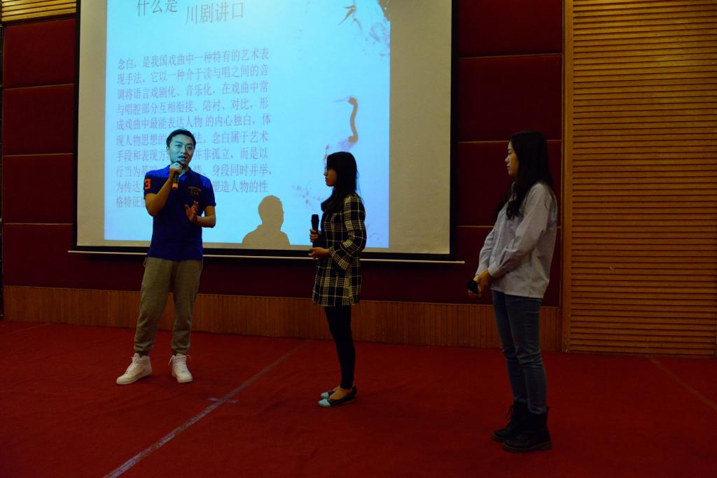 “五四”青年节前夕,由pp电子平台官网入口经济学院主办的“传统文化进校园,别样五四话戏曲”活动在7200会场隆重举行。重庆市川剧院青年艺术家张严威老师以风趣幽默的体验式讲座形式带领现场近200名师生就川剧五大行当、唱腔等戏曲知识进行了详细的讲解,为现场观众呈现了一场精彩纷呈的视听盛宴。出席本次活动的嘉宾还包括pp电子平台官网入口校团委杨娟副书记,pp电子平台官网入口经济学院分党委王小玲书记、于频副书记,以及来自文学与新闻学院、商务策划学院、法学院、会计学院、通识学院等学院的数十名资深戏曲“票友”。此次活动受到新华网、央广网、华龙网、新浪网、大渝网、重庆晚报网、中新社重庆新闻网、重庆晨报等多家主流网媒、纸媒的报道。