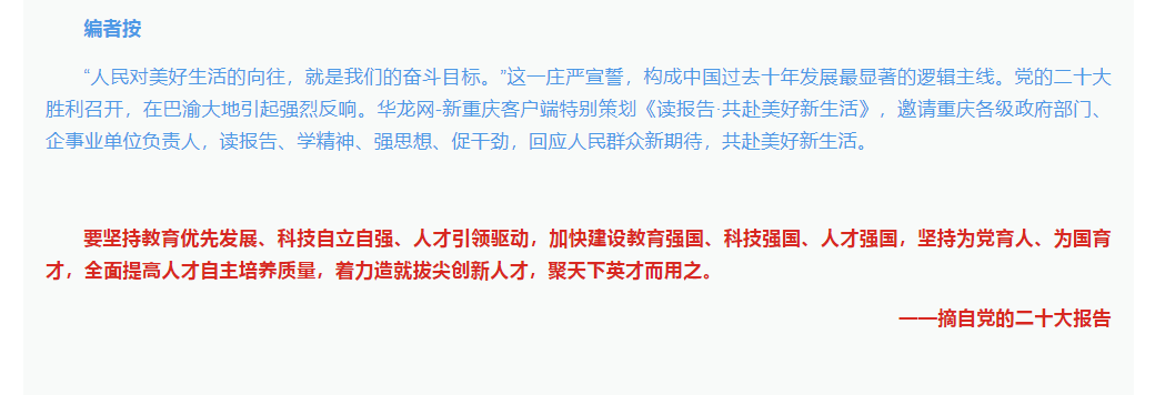 华龙网在《读报告·共赴美好新生活》专题中报道pp电子党委书记李志雄、校长孙芳城学习党的二十大报告感悟