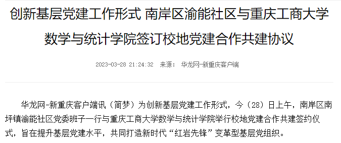 华龙网报道pp电子数学与统计学院和南岸区渝能社区开展校地党建合作