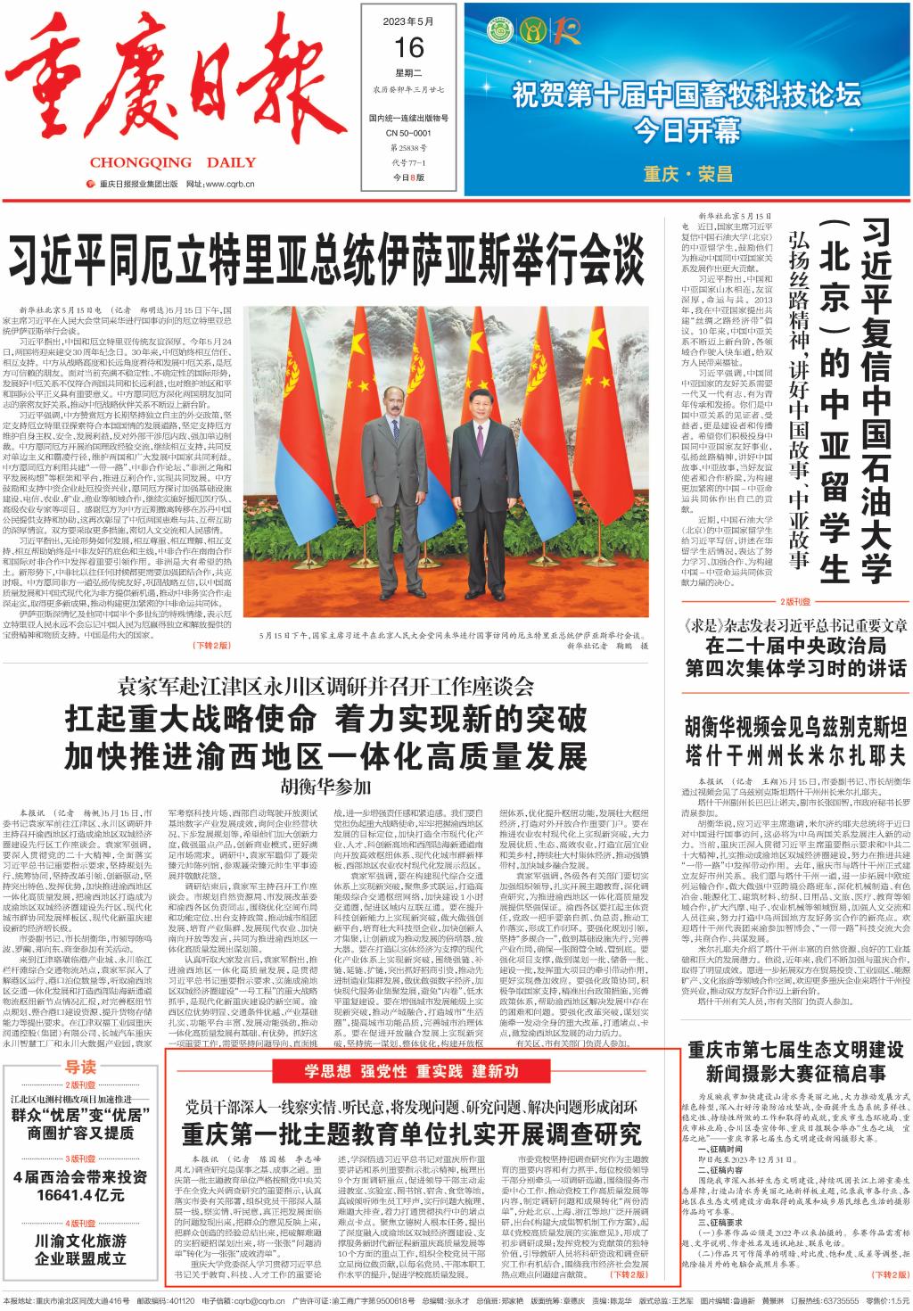 5月16日,重庆日报以《重庆第一批主题教育单位扎实开展调查研究》为题,报道pp电子扎实开展调查研究。报道中指出,学校党委制定《pp电子平台官网入口关于在全校大兴调查研究的实施方案》等文件方案,围绕11个方面重点调研内容,从贯彻落实党中央决策部署和习近平总书记关于高等教育和对重庆所作重要讲话及系列重要指示批示精神、立德树人、人才培养改革、学科建设、创新能力、党管人才、开放办学、校园文化、依法治校、党的建设等方面选题。班子成员牵头成立10个调研组,每人牵头一个调研课题,细化调研方案,对调研安排进行科学调度。学校领导班子深入基层一线,到校内各部门、学院、科研平台等地方,真诚倾听师生员工对学校各项事业发展的意见和建议,对发现的问题及时部署进行整改,将调研成果转化为助力学校高质量发展的工作实效。