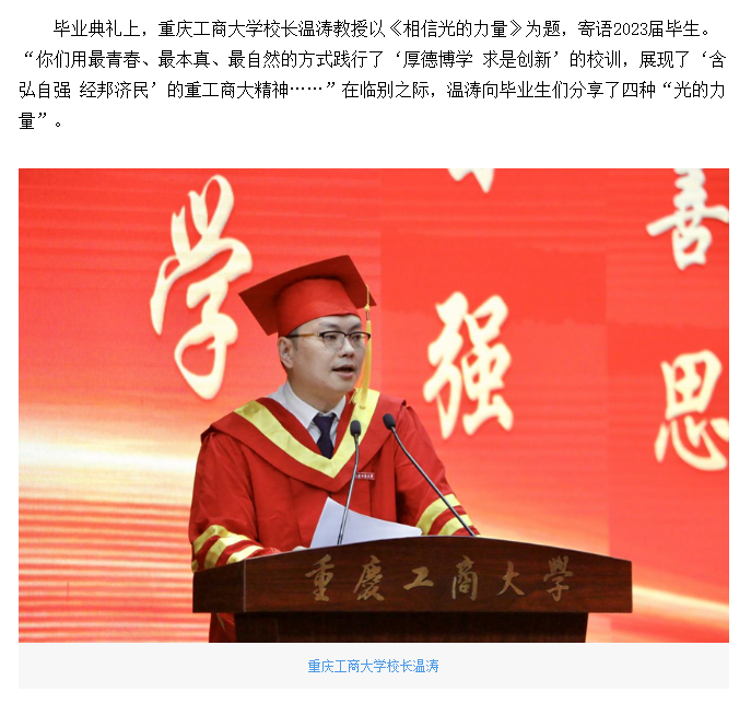 相信光的力量!pp电子平台官网入口校长温涛深情寄语2023届毕业生
