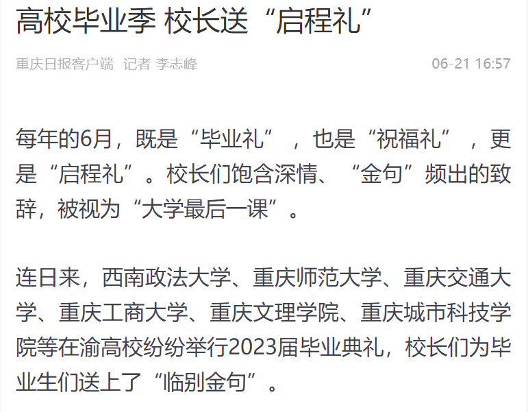 高校毕业季 校长们送“启程礼”
