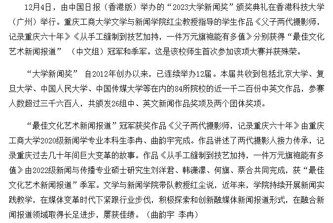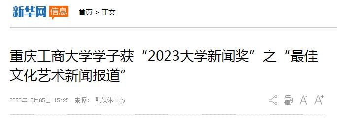 新华网报道pp电子学子获“2023大学新闻奖”之“最佳文化艺术新闻报道”