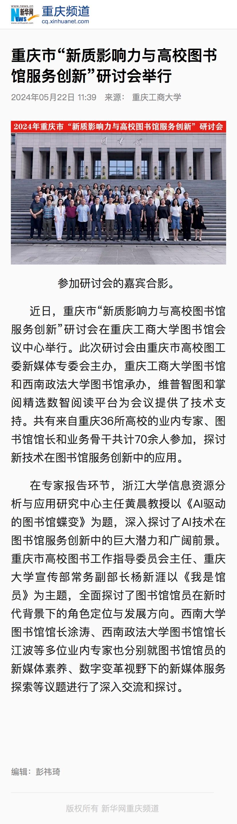 新华网报道pp电子图书馆举办“新质影响力与高校图书馆服务创新”研讨会