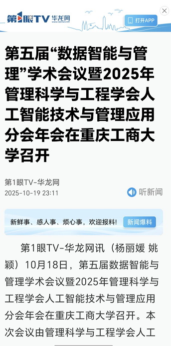 2.第1眼TV-华龙网:第五届“数据智能与管理”学术会议暨2025年管理科学与工程学会人工智能技术与管理应用分会年会在pp电子平台官网入口召开