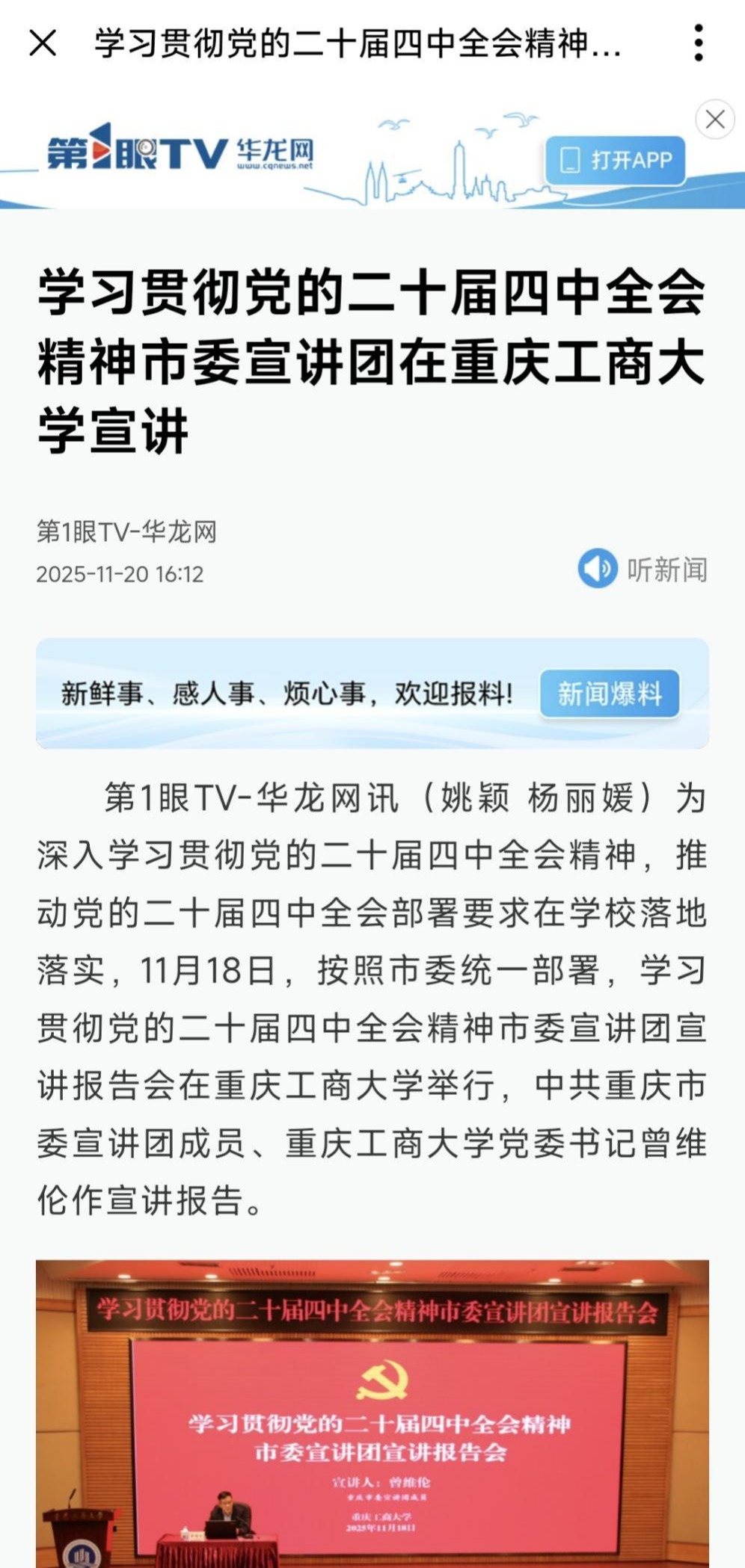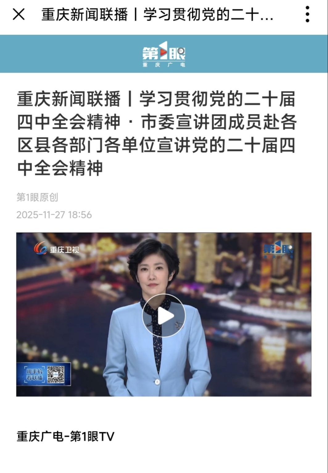 2.第1眼新闻:重庆新闻联播丨学习贯彻党的二十届四中全会精神 · 市委宣讲团成员赴各区县各部门各单位宣讲党的二十届四中全会精神