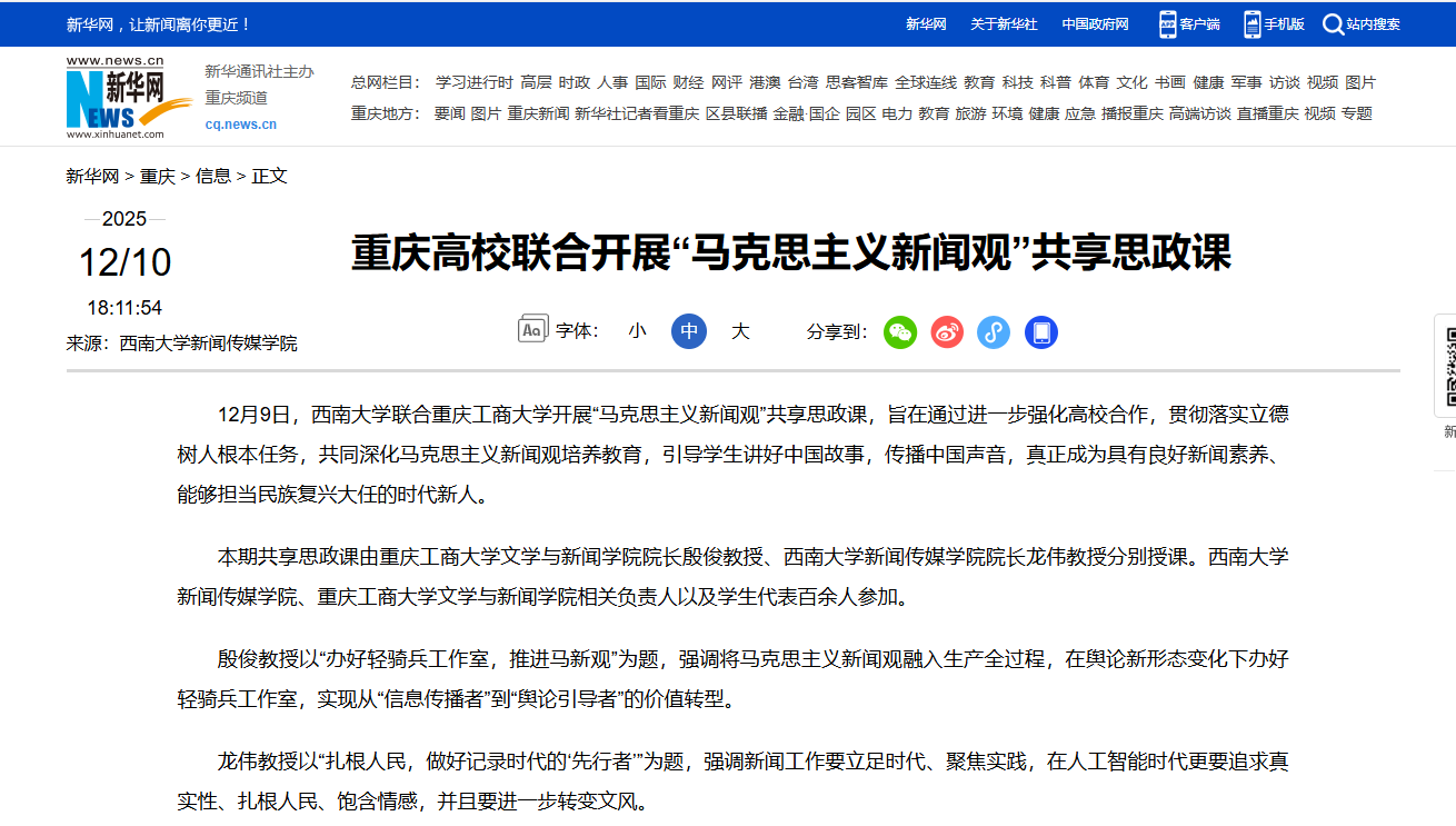 新华网:重庆高校联合开展“马克思主义新闻观”共享思政课 http://cq.news.cn/20251210/2c34406066e348f8ac295c67c7b737f6/c.html
