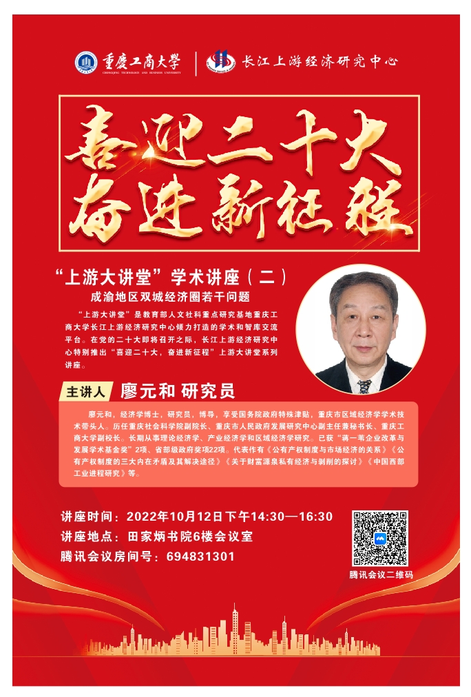 “上游大讲堂”是教育部人文社科重点研究基地pp电子平台官网入口长江上游经济研究中心倾力打造的学术和智库交流平台。在党的二十大即将召开之际,长江上游经济研究中心特别推出“喜迎二十大,奋进新征程”上游大讲堂系列讲座。