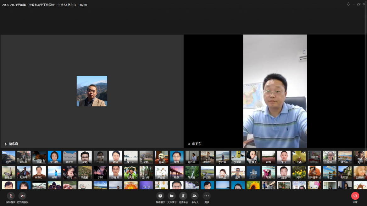 骆东奇对本次考试工作做了“13366”五个方面的强调,一是从六方面认识此次考试的重要性特殊性,即首次大规模延期考试、首次返校就考、首次大规模学生线上学习后考试、疫情防控常态化的大规模考试、机构和中干调整后首次考试、十三五收官之年和学校申博重要时间节点;二是各学院做到六个到位:即监考提前到位、辅导员提前到位、各级巡考到位、考前清理提醒检查到位、考后试卷清点到位、人文关怀到位;三是考前学院要召开三会,党政联席会专题研究、全院教师考试工作会培训和布置、学生考前主题班会严格考试纪律;四是对考试过程中做三个强调,考试相关人员保持信息畅通、考试过程中任何情况要及时沟通、考试各环节严格规范有记录;教务与学工有效联动,努力实现“零差错、零事故、零投诉、零作弊”目标。