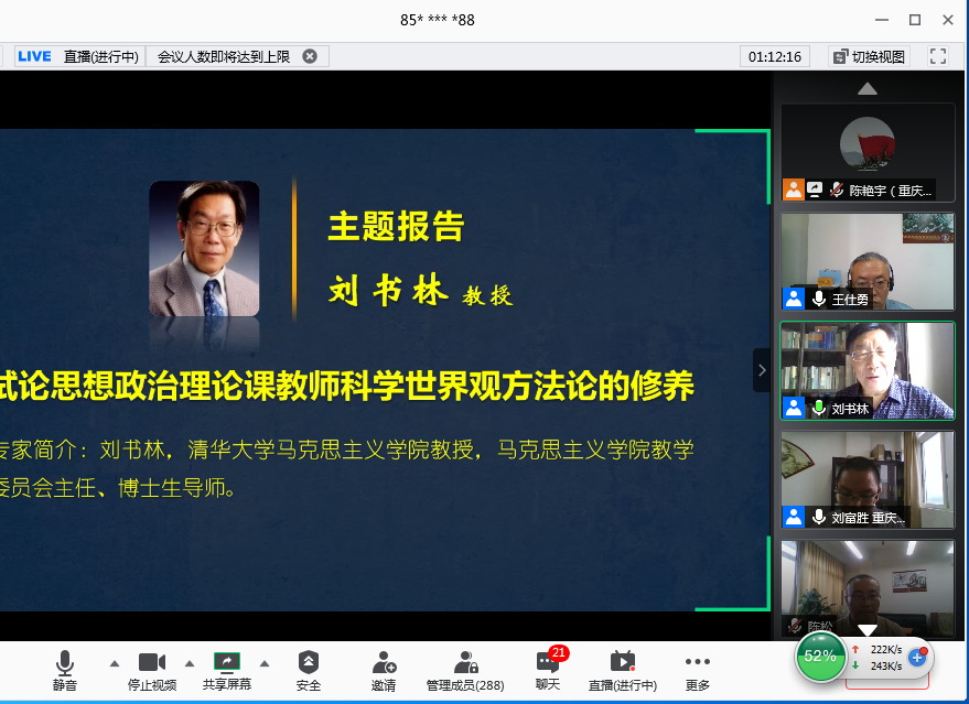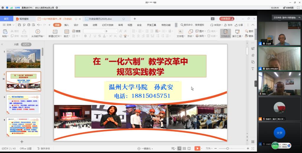 pp电子刘富胜教授分享了“高校思想政治理论课‘全覆盖两结合三支撑’综合实践改革”为题,介绍了“六大模块”和“十大环节”的教学设计,以及疫情期间pp电子通过“思想政治理论课综合实践”课程对学生进行安全教育、思想引领和心理疏导,激发了教师参与教学的积极性和主动性,增强了学生的认同感和获得感。