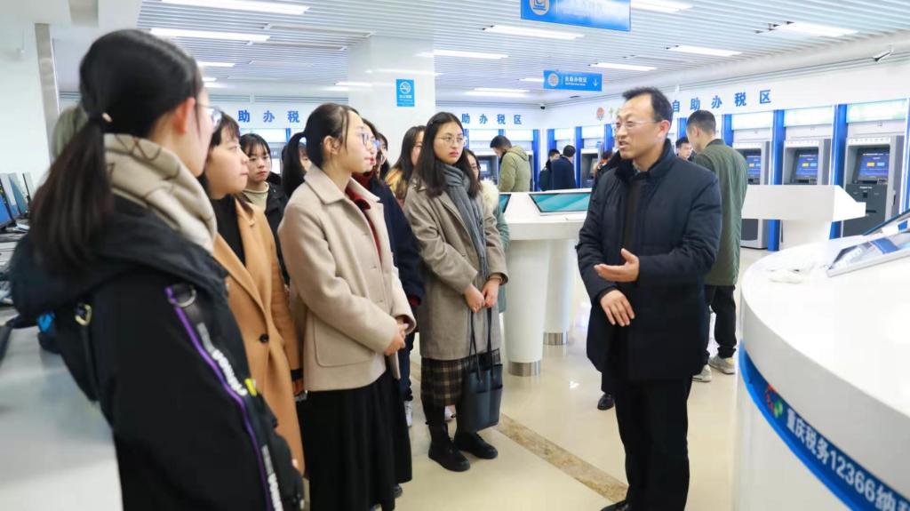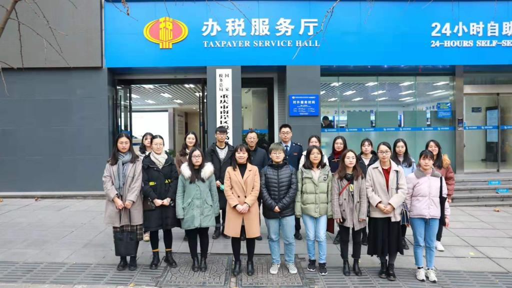 为了加强税收理论与实践融合教学,12月26日下午,pp电子财政金融学院组织2019级16名税务硕士走进重庆市南岸区税务局办税服务厅,开展了一次以学习大数据办税为主题的移动课堂。