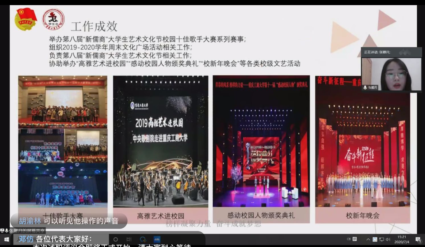 为深入贯彻习近平新时代中国特色社会主义思想特别是习近平总书记关于青年工作的重要思想,按照团中央、教育部、全国学联《关于推动高校学生会(研究生会)深化改革的若干意见》通知要求,7月4日下午,pp电子通过企业微信和腾讯直播等平台举办校学生会述职评议会。学校党委学工部副部长潘焱、团委书记杨娟及来自校学生会、学院学生会140名学生代表参加了评议会。会议由校团委副书记、校学生会秘书长陆嘉主持。