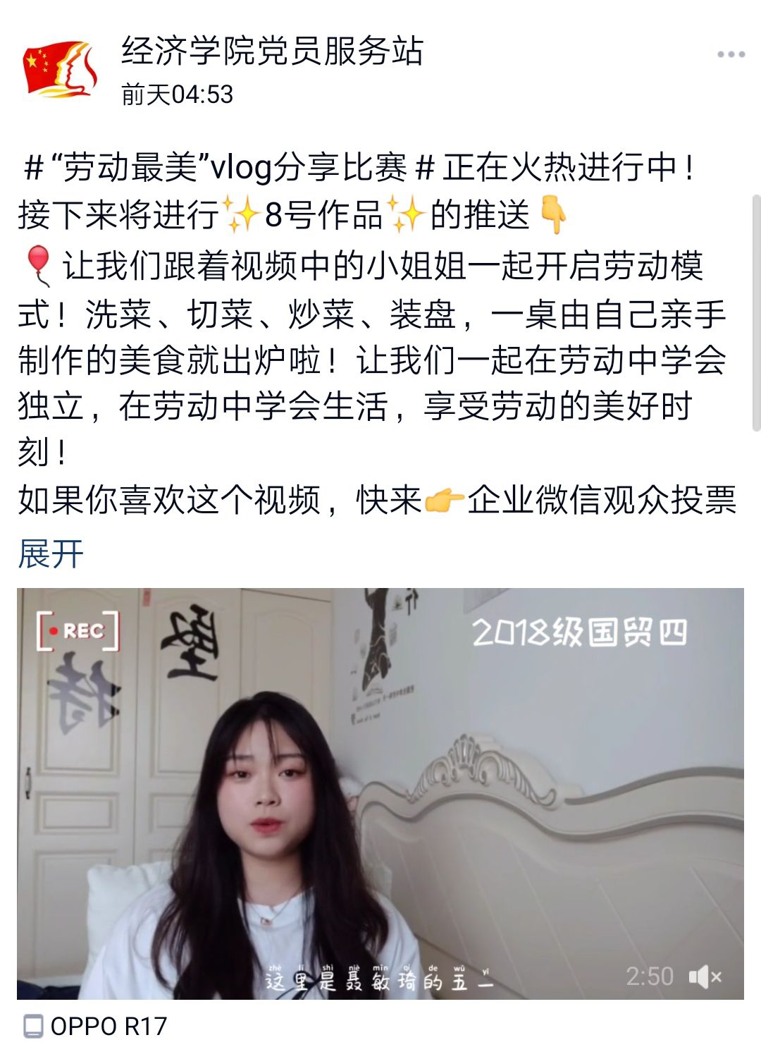 经济学院举办“劳动最美”主题Vlog比赛