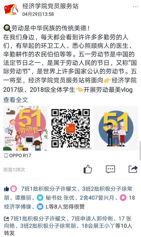 近日,经济学院党员服务站、分团委成功举办以“劳动最美”为主题的Vlog比赛,旨在让同学们自主地感受劳动的内涵、体会劳动的快乐、上一堂劳动教育课。虽然是线上活动,同学们仍然积极参与,视频的拍摄和制作质量都充分体现了同学们的“劳动最美”。视频内容非常丰富,不仅有令人垂涎的丰盛午餐还有打扫得一尘不染的家。聂敏琦同学在视频中说:“劳动的过程是既辛苦又快乐的,但劳动成果所带来的成就感是无法代替的”。党服站指导老师郝颖说:“挥洒劳动的汗水、体味劳动的艰辛,才能收获劳动的快乐,也才能真正理解劳动的内涵。我们教育工作者就是要不断强化劳动教育,让学生珍惜劳动成果、愿意劳动、热爱劳动。”