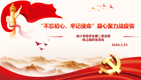 本次会议是会计学院学生第二党支部第一次在线上举行的组织生活会,在全国人民众志成城抗击疫情的时刻,本次会议对于进一步深入学习习近平总书记重要讲话精神,坚决贯彻党中央、教育部、重庆市政府及学校关于新冠肺炎疫情防控各项决策部署,帮助党员正确认识疫情防控形势、坚定战胜疫情信心,全力做好党员的思想政治教育工作具有重要意义。