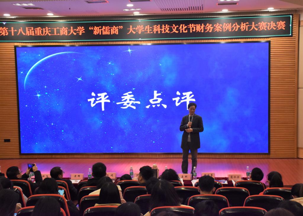评委钟廷勇老师对本次大赛进行了点评,六组参赛小组各有风采,将“新儒商”风采展现的淋漓尽致,他也指出了同学们的不足,希望同学们继续进步;同时提出同学们一定要适应大数据背景下的学习方式,变被动为主动,要结合专业进行调查研究,理论结合实际,努力将自己变得更加优秀,以适应国家、行业、企业的发展变化。