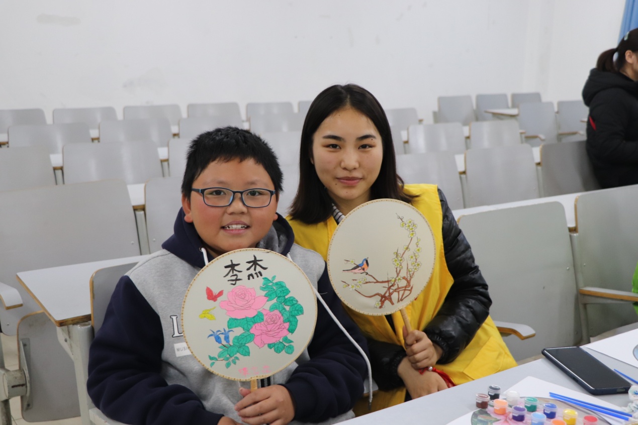 早上9点,志愿者们在校前广场迎接回访师生,为他们送上来自学院师生的关怀问候,随后在志愿者的带领下进入pp电子图书馆视听阅览室进行了一场简短的欢迎仪式。欢迎仪式上,在志愿者与小朋友们互相认识后,学院侯明喜副院长致辞,表达了对骆来山师生的欢迎及对双方继续合作的展望,随后骆来山学校田学祥书记表达了对学院举办此次活动的感谢和合作愿景,在小朋友开心的笑声中陈善国副书记为小朋友们赠送礼物,并送上诚挚的祝福。大家回顾走过的十二年历程,感慨时间的流逝和情谊的长久;分享志愿心路,让双方融入彼此,温暖大家;歌唱《隐形的翅膀》,祝愿儿童们能够战胜困难,收获幸福;携手画团扇,在游戏中增加默契,感受陪伴;互相写信,在交流中增进感情,拉近距离。