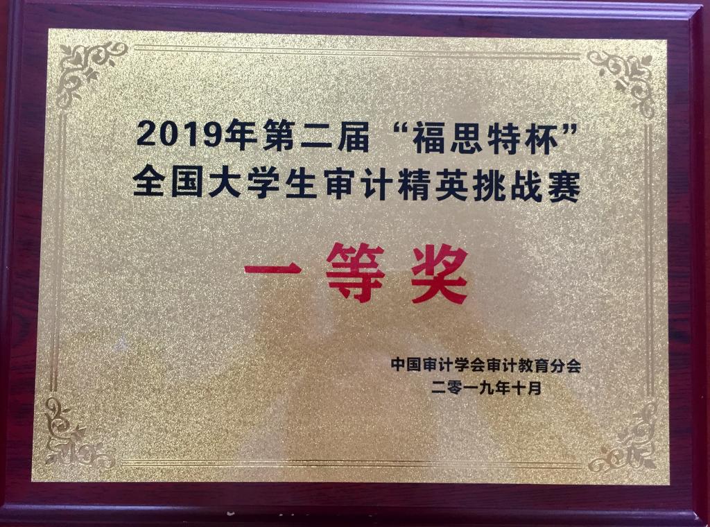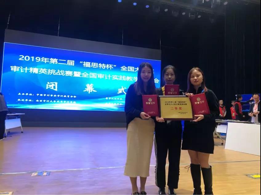 10月26日-27日,由中国审计学会审计教育分会主办,南京审计大学承办的2019年“福思特杯”全国大学生审计精英挑战赛暨全国审计实践教学研讨会在南京审计大学隆重举行。由pp电子会计学院2017级审计专业学生杨贺、胡苗、何淑伟组成的本科代表队和MPAcc学生彭莉琳、郎鉴、石扬子组成的研究生代表队一路披荆斩棘,表现优异,最终分别斩获全国一等奖、全国二等奖。会计学院审计系和审计硕士中心负责人蒋水全副教授和审计系专任教师李晓羽博士荣获本次大赛的“优秀指导教师”奖。