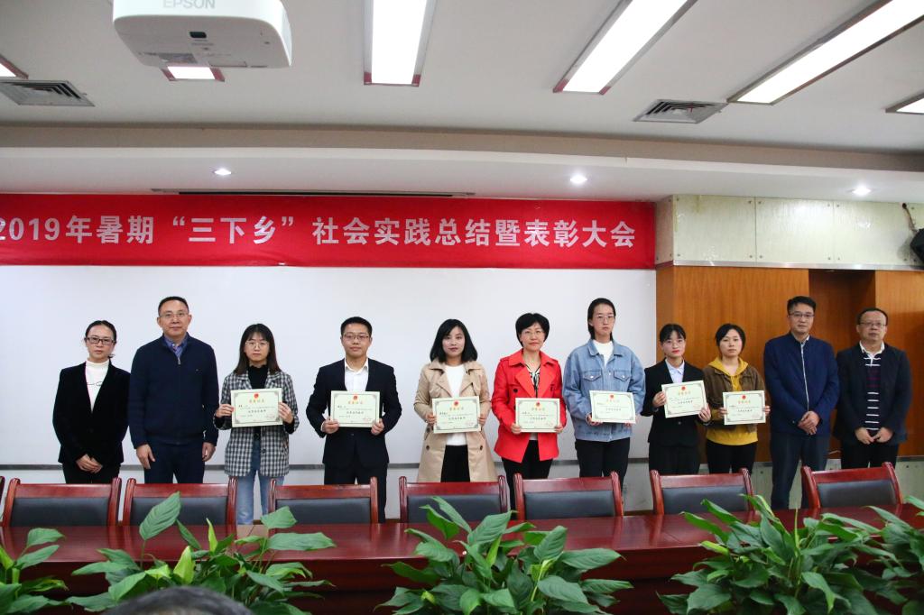 会议伊始,与会人员一起观看2019年暑期“三下乡”社会实践活动视频,回顾了各实践团队暑期“三下乡”的精彩瞬间。紧接着,校团委陆嘉副书记对pp电子2019年大学生暑期“三下乡”社会实践主要工作向与会人员做了汇报。随后,各学院分团委负责人就2019年暑期“三下乡”社会实践特色亮点工作和实践成果进行了PPT汇报,展示了各学院实践团队开展的情况和取得的成果。评委们结合各学院社会实践工作的组织和开展情况,进行了评分。随后,校团委杨娟书记宣读了《关于表彰2019年暑期大学生“三下乡”社会实践活动先进集体和个人的决定》。经过材料审核评比以及现场评委评分,最终评选出管理学院、数学与统计学院、财政金融学院、文学与新闻学院、旅游与国土资源学院、法学院、研究生会等7个暑期“三下乡”社会实践工作先进集体,谭予涵、吴卫、罗勇、刘璐、胡菡、罗观、董承婷等7名优秀指导教师,会计学院“益路童行”武隆暑期支教团等21支先进团队,经济学院左晓祺同学的《关于中国省域乡村绿色发展评估、空间差异及趋同性的调研研究》等261篇优秀调查报告,商务策划学院王启鹏同学等11名社会实践宣讲活动优秀个人。与会领导为获奖集体和个人进行了颁奖。