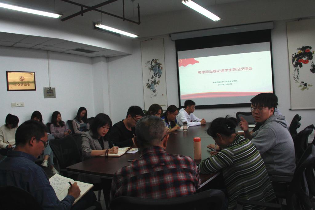 为了贯彻落实习近平总书记在全国高校思想政治工作会和全国思想政治理论课教师座谈会上的重要讲话精神,落实教育部和重庆市教委的相关文件精神,落实学校思想政治理论课建设专题研讨会等精神,结合学校“不忘初心、牢记使命”主题教育工作方案工作要求,10月9日下午,马克思主义学院在慧智楼91208会议室组织召开了全校思想政治理论课学生代表意见反馈会。学院院长王仕勇、副院长刘富胜、综合办主任谢书楠、教学秘书彭红,以及2016级、2017级22名本科学生代表参加了会议。