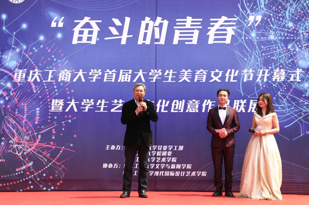 为全面落实习近平总书记在全国教育大会上的讲话精神,培养德智体美劳全面发展的社会主义建设者和接班人,3月20日,pp电子首届“奋斗的青春”大学生美育文化节在南岸校区校前广场隆重开幕。pp电子副校长李国军,校友总会副会长周勃,中国传媒教育实践基地联席主席唐维升,党委学工部、教务处、校团委、创业学院等部门负责人以及艺术学院、文学与新闻学院、现代国际设计艺术学院师生及其他各学院师生代表参加了此次开幕式。