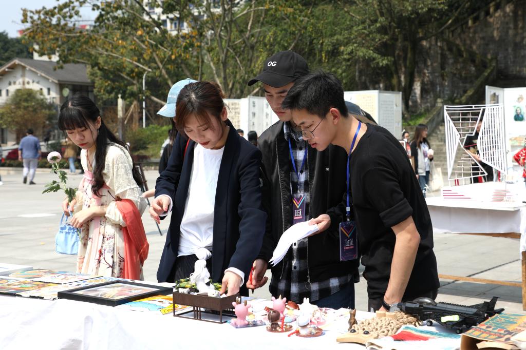 开幕式结束后,在场师生参观了现场作品展,展区分为绘画、书法、摄影以及手工作品等多个展区。展会特别设立艺术体验区,师生可在此观看现场作画过程,切身感受并参与作品诞生的过程。展会还设立了投票区,现场师生可在这里直接投票给自己喜欢的作品,参赛学生也可以现场拉票,现场气氛热烈。