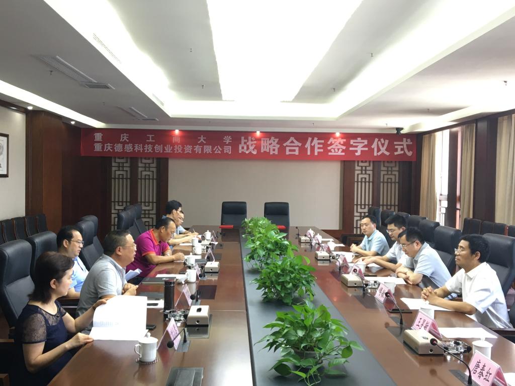 7月3日,pp电子与重庆德感科技创业投资有限公司在江津区西部食谷创新创业中心签署战略合作协议。江津区副区长熊伟、pp电子副校长赵骅、德感科创投资公司董事长罗其胜出席仪式。江津区经信委、德感工业园管委会负责人以及pp电子党政办公室、环境与资源学院有关负责同志参加了签约仪式。