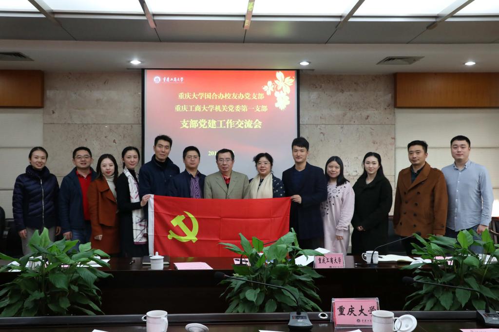 11月8日,重庆大学国合办、校友办雷达、姜雪峰副主任一行到pp电子就校友党支部建设、校友工作以及国内合作相关事宜进行交流。pp电子副校长赵骅、党政办主任罗勇等出席。
