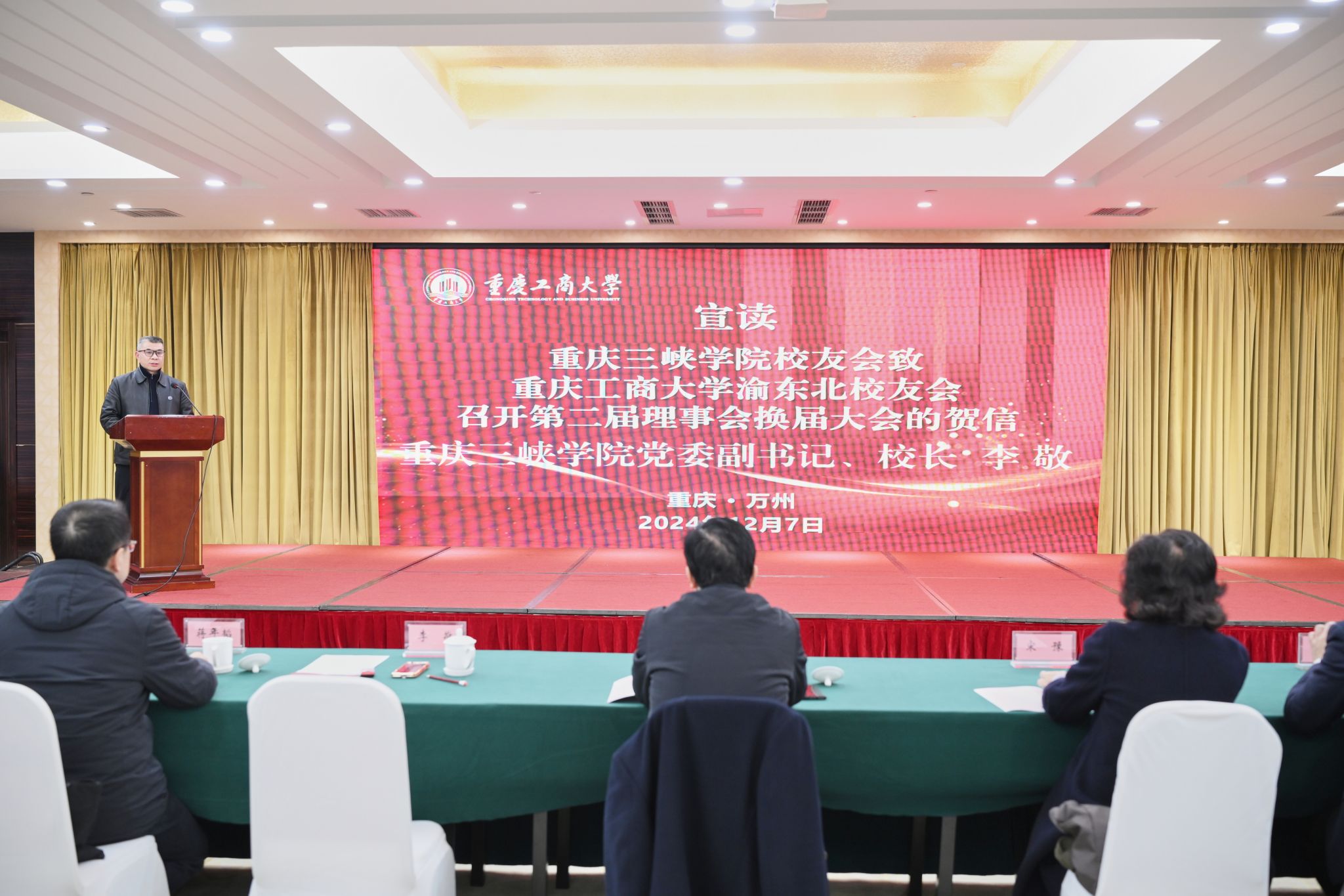 重庆三峡学院党委副书记、校长李敬代表兄弟院校校友会致贺信。