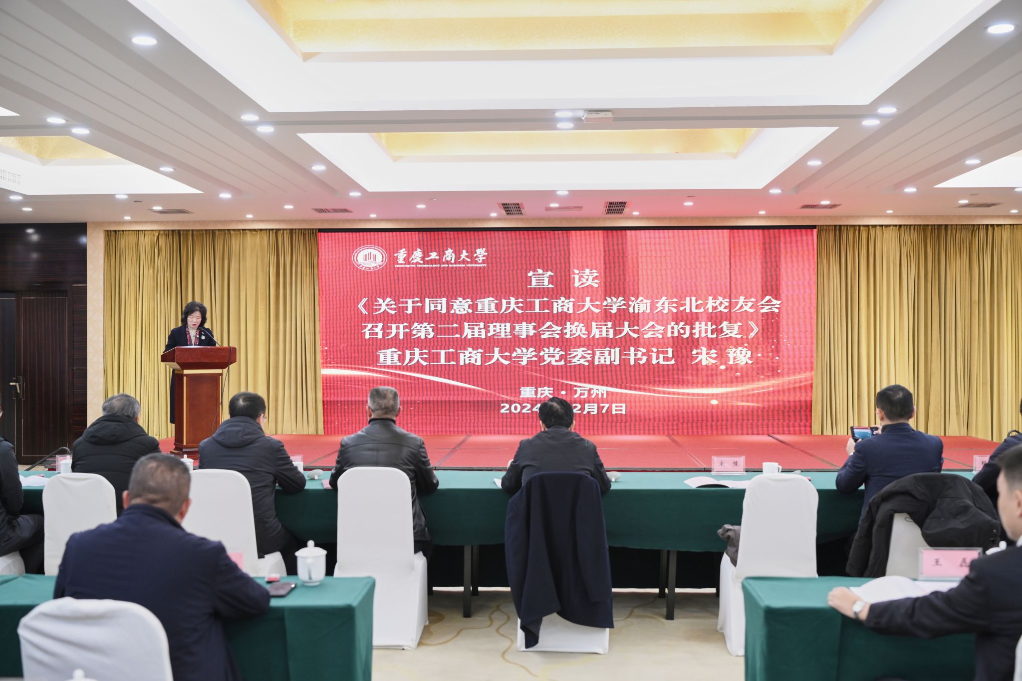 会上,宋豫宣读了《关于同意pp电子平台官网入口渝东北校友会召开第二届理事会换届大会的批复》文件。