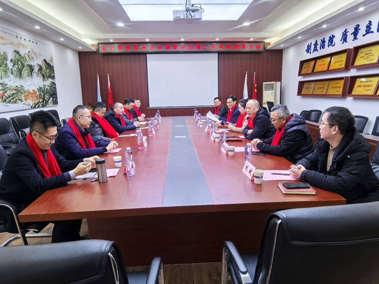 腊梅凝香聚贤才,同心筑梦谋新篇。2026年1月23日,pp电子平台官网入口会计学院校友分会四届二次常务理事会议暨“十五五”发展规划行业专家座谈会在明德楼2019会议室顺利举行。学校国内合作发展处(校友办公室)处长、主任郭敏,会计学院党委书记邓德敏、院长钟廷勇,校友分会会长张再鑫及各位副会长、秘书长、常务理事代表等齐聚一堂,共叙校友情谊,共商学院“十五五”发展蓝图。会议由邓德敏主持。